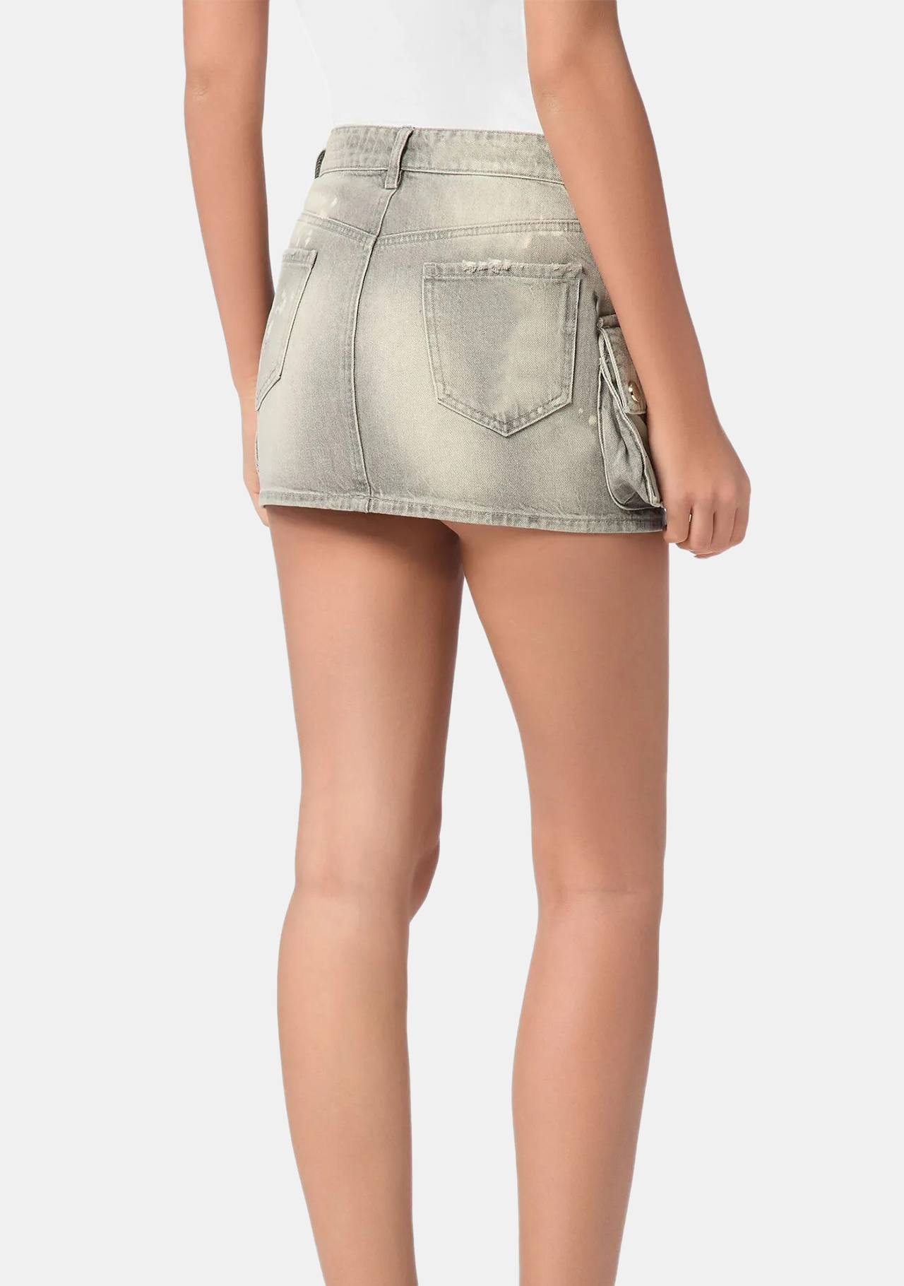 Stone Gray Cargo Skirt – Denim Utility Style for Modern Fashion